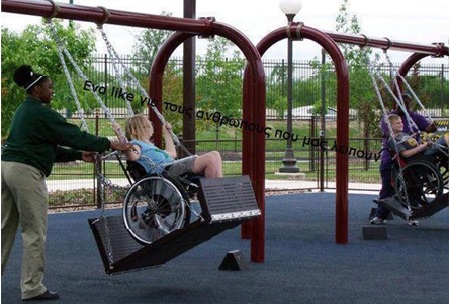 Πιο κάτω θα δείτε μια φωτογραφία που βρήκα στο διαδίκτυο και δείχνει κούνιες οι οποίες κατασκευάστηκαν ειδικά για παιδιά με αναπηρίες.